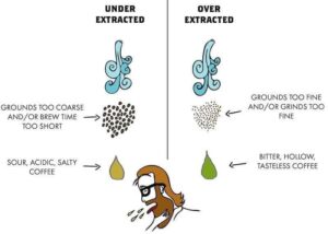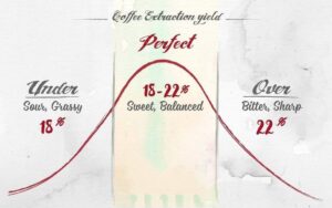Nếu cốc cà phê của bạn có tỷ lệ chiết xuất dưới 18% (under extraction) nghĩa là chưa khai thác hết thành phần hương vị mong muốn. Tỷ lệ chiết xuất càng thấp là có càng nhiều các chất hòa tan ở giai đoạn sau không có cơ hội để được chiết xuất, kết quả là hương vị không cân bằng. Ngược lại, nếu tỷ lệ chiết xuất hơn 22% (over extraction) sẽ rất đậm và đắng, vì các chất vị không mong muốn và khó tan cũng đã đi vào cà phê.