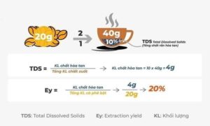 Ghi chú: Tỷ lệ chiết xuất (lượng cafe được hòa tan/tổng khối lượng cafe) tối ưu: 18 -22%.