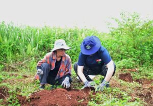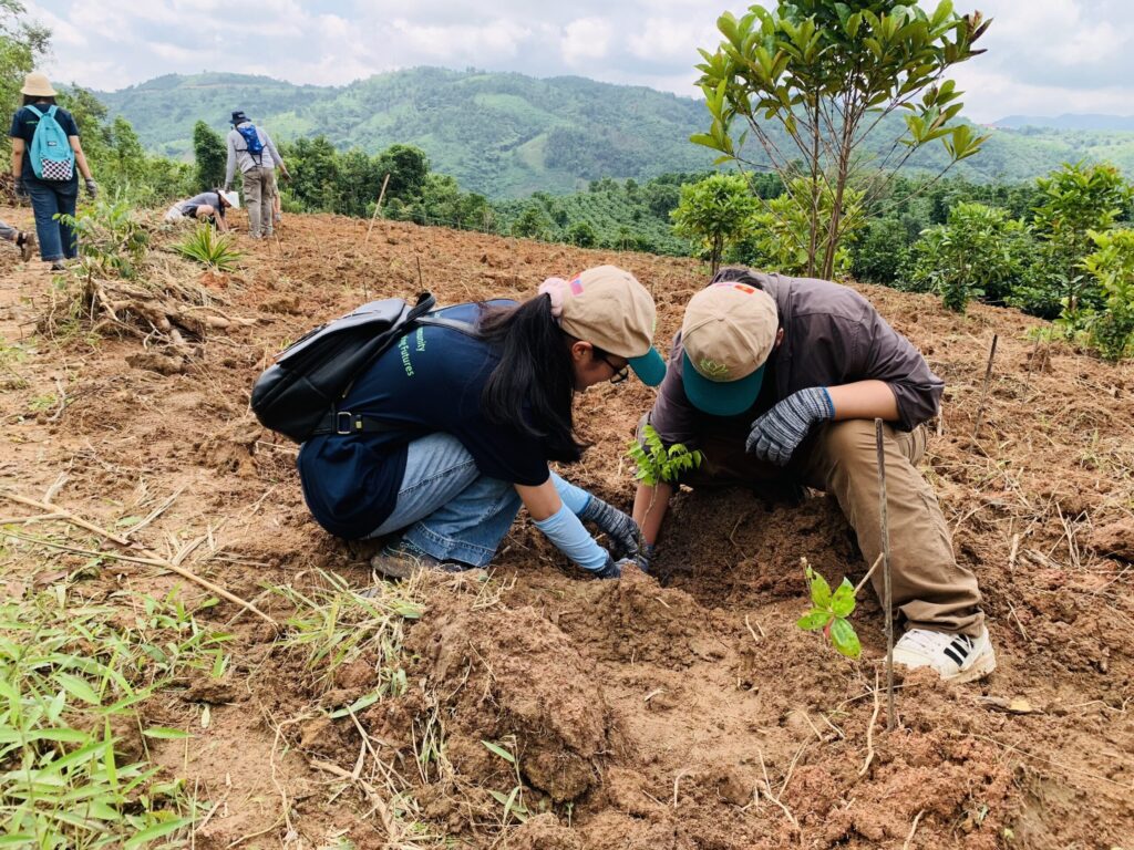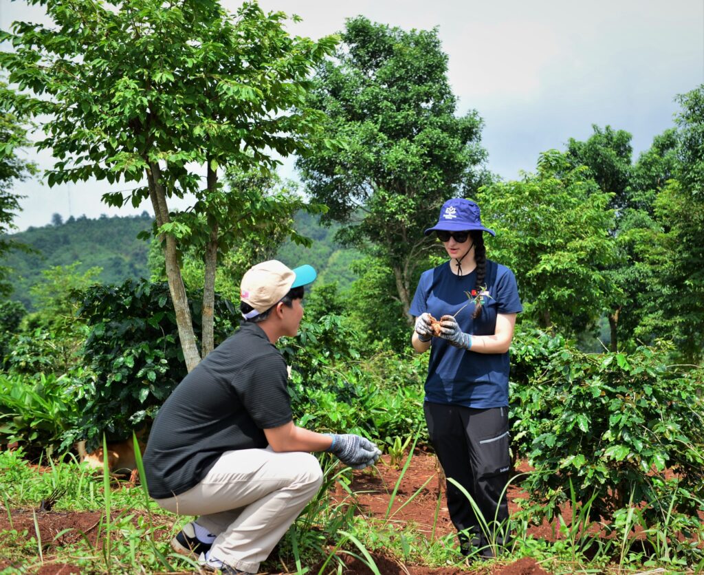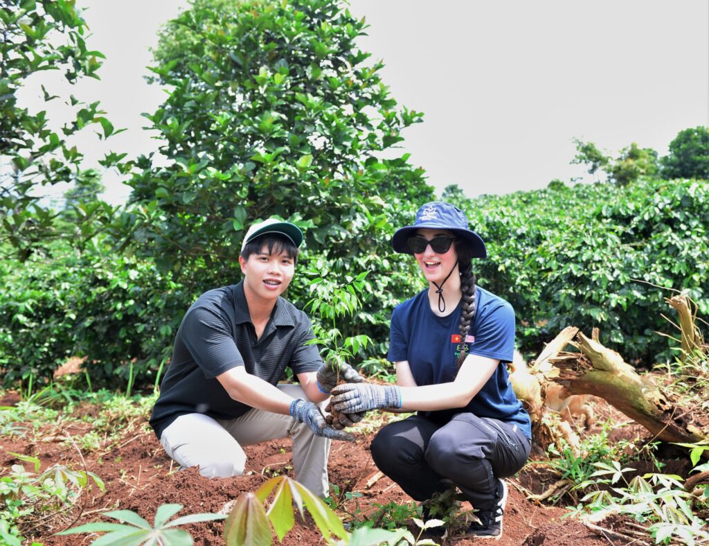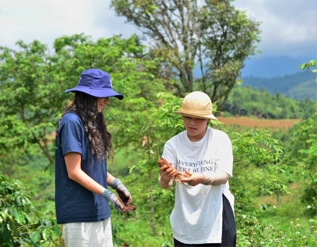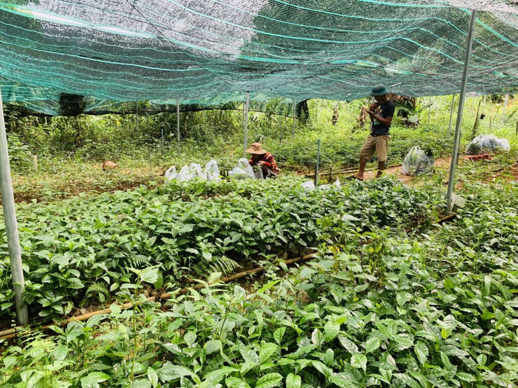 Những chiếc cây từ vườn ươm LÁ được các bạn sinh viên Đại học Washington Hoa Kỳ dưới sự tài trợ của Peaces Tree Việt Nam đã được đặt ươm trên những vườn cà phê cà phê mới.