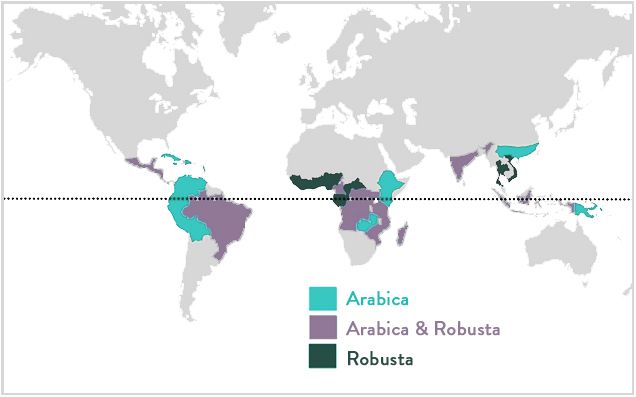 Sự phân bổ cây cà phê trên thế giới